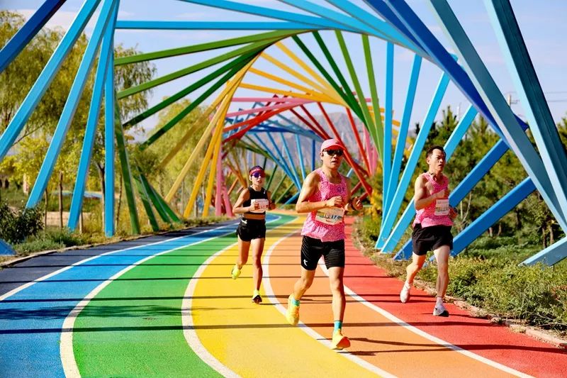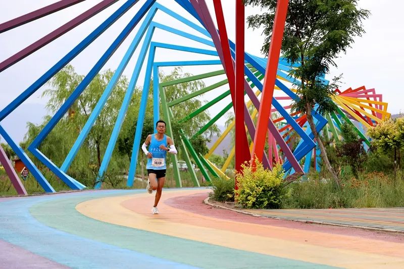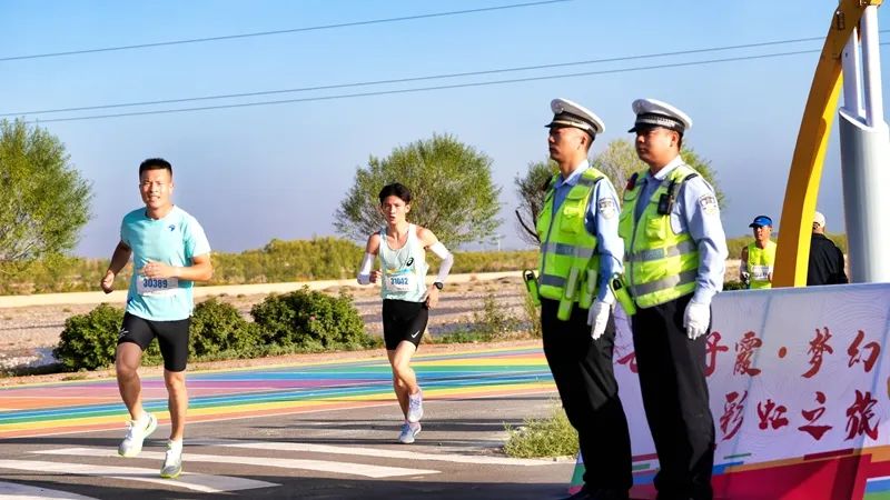 與以往不同的是,此次全程馬拉松選手途經了臨澤網紅打卡地——丹霞彩虹康養谷,彩虹跑道與七彩丹霞的美景相互映襯,宛如一幅絢麗的畫卷,被跑者們稱為“最美5A級賽道”。黑科技加持的一體式號碼布芯片與高位視頻直播,讓賽事更加公平、公正、公開,也為觀眾帶來了更好的觀賽體驗。
