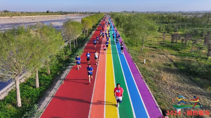 2024年,臨澤馬拉松首次與“跑遍甘肅”聯賽聯動,吸引了近5000名跑者共赴這場“彩虹之旅”。62歲的王建軍與54歲的彭宇鳳作為連續九屆參賽者,獲頒“榮耀跑者”證書,他們的故事成為賽事精神的生動寫照。