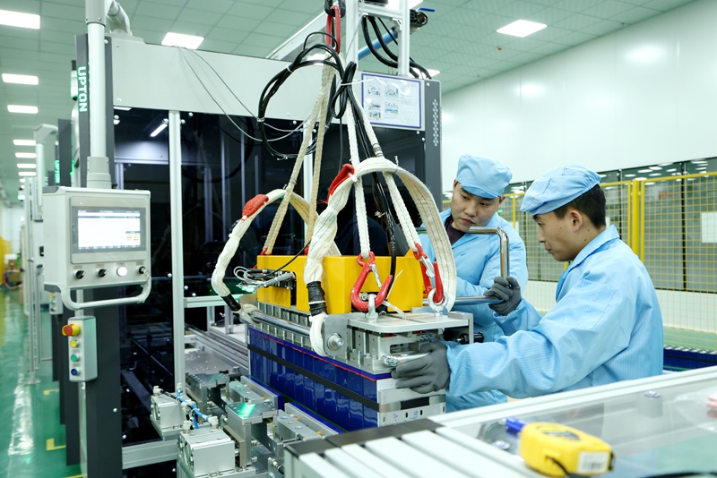 春節將至,1月21日,走進臨澤縣扎爾墩工業集中區的易事特(張掖)儲能技術有限公司PACK車間內,儲能電池模組線上各項設備開足馬力運轉,車間工人與生產機器人配合,進行電芯大包裝上線,電芯、端板上料堆疊,模組焊前絕緣測試等生產流程,加緊生產發往新疆和華電天山共計500MWh儲能系統,現場一派熱火朝天的繁忙景象。(程莉 汪永凡)