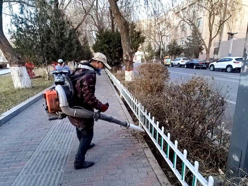 在縣城文化體育廣場,養(yǎng)護(hù)工人冒著冬日寒意,肩扛吹風(fēng)機(jī)穿梭于綠化帶間。“冬季綠地落葉堆積不僅影響美觀,還易滋生細(xì)菌、引發(fā)消防安全隱患。”正在作業(yè)的養(yǎng)護(hù)工人專注清理每一處死角。針對冬季廣場人流密集、綠植處于休眠期的特點,工人們?nèi)梯p拿輕放工具,避免損傷綠植根系,同時避開市民休閑集中時段錯峰作業(yè),最大限度減少干擾,讓廣場綠地在冬日暖陽下依舊清爽鮮亮。